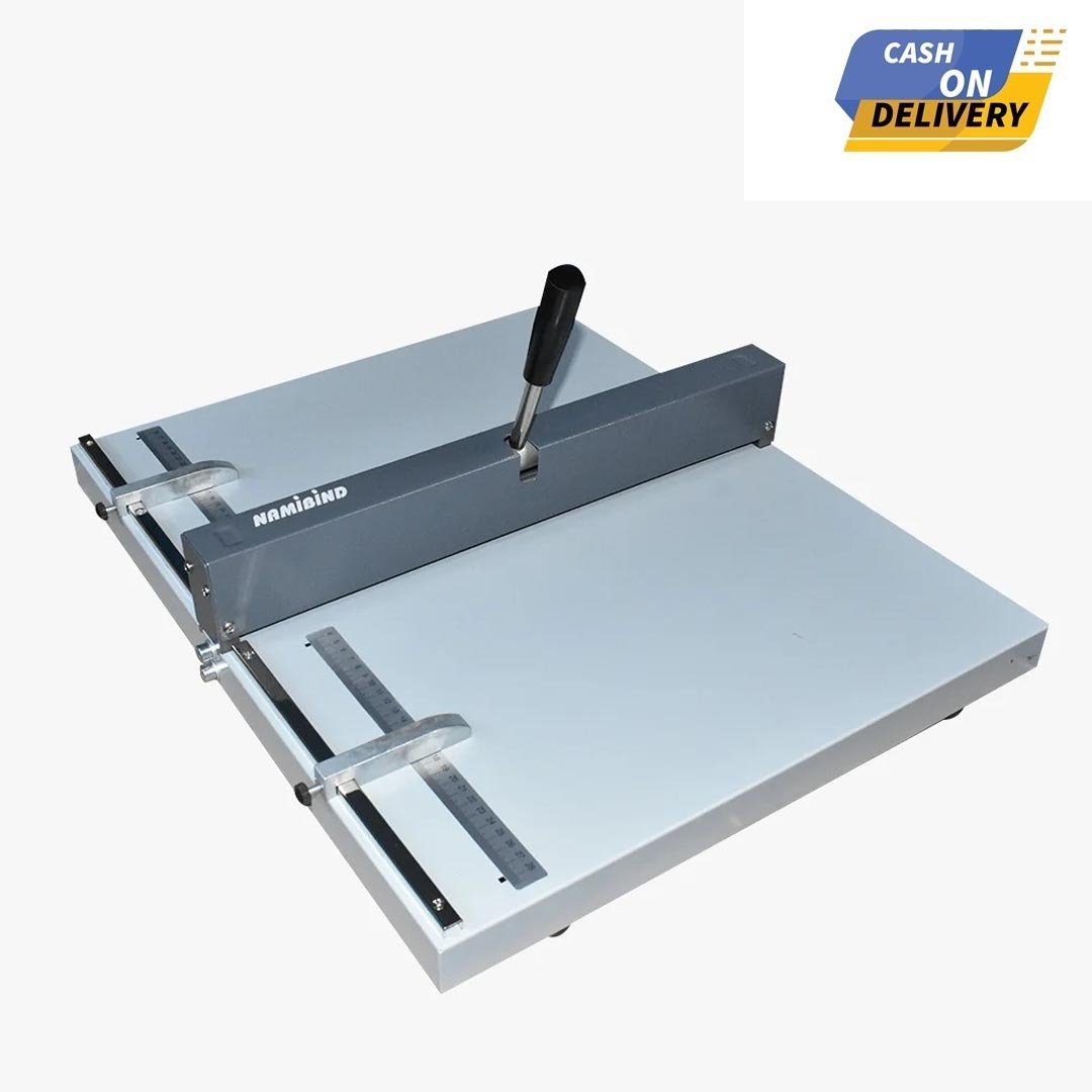 Introducing Namibind’s high-performance Manual Creasing Machine, a versatile tool designed to meet all your paper and card creasing needs. With a robust creasing length of 455mm, this machine is perfect for creating clean, precise folds on various materials, enhancing the professionalism of your projects. Compact and efficient, the creasing machine measures 600 × 500 × 120mm, making it an excellent addition to any workspace without occupying much space. It handles a broad range of paper weights, from as light as 60g to as heavy as 500g, providing flexibility for various applications, whether you’re working with delicate sheets or sturdy card stock. Engineered for accuracy, the creasing depth is set at 1mm, ensuring that each crease is sharp and consistent. The creasing mold width of 1.2mm contributes to the precision, allowing for fine detail work and making it suitable for high-quality brochures, invitations, book covers, and more.