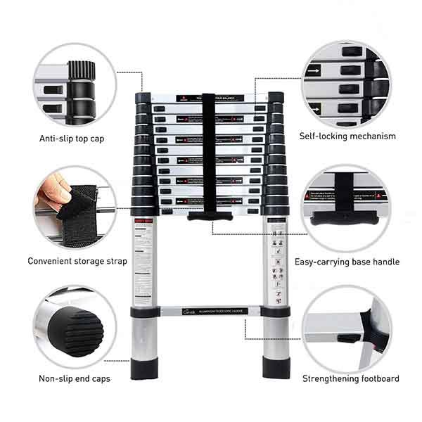 WIDE APPLICATION: Eminent for Home or Building maintenance work, Cleaning Window, Decorating the interior/exterior and doing a paint job. This telescopic ladder is a must-have accessory for every household or tools gear. It should be used to reach very high areas. Experimented and worthy ladder for professionals and individuals.