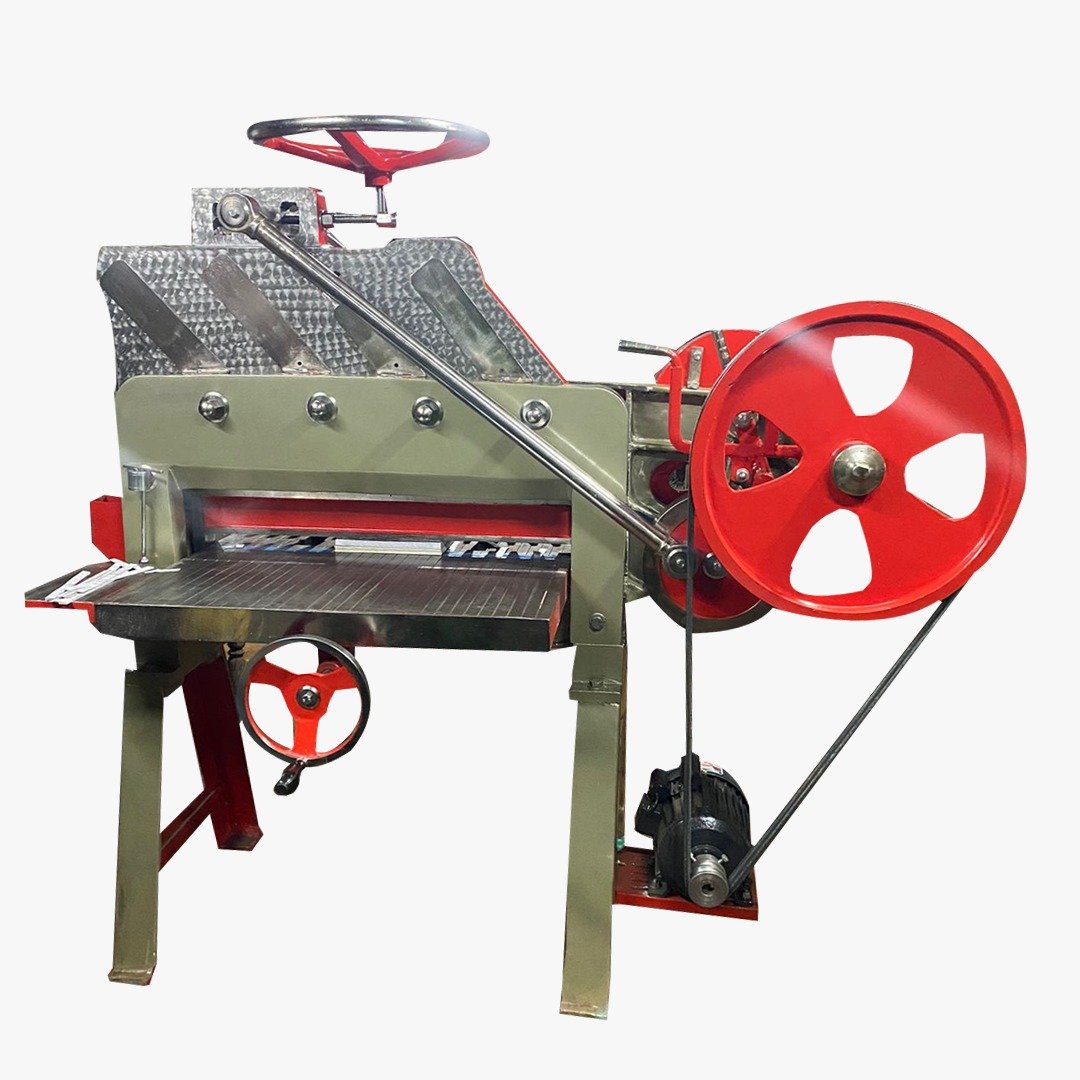 Namibind 36-inch Single Motor Paper Cutter is a robust, high-performance cutting machine designed for precision and durability. Powered by a 2 HP motor, it delivers a cutting width of 36 inches, making it ideal for handling various materials such as paper and cardboard. This machine ensures smooth and efficient cutting, equipped with two EN49 high-quality stainless steel knives, four sturdy runners, and a double-slot plate. The cutter is perfect for high-volume cutting operations, built with a durable MS body and featuring steel gears and a steel clutch. With an approximate weight of 1800 kg, it remains stable during use, delivering consistent results. Optional motorized clamping (auto clamping) enhances convenience, while the machine is packed securely in wooden packaging for safe transportation. Ideal for book publishers, printers, binders, and notebook makers, this cutter is a reliable solution for precise and heavy-duty cutting tasks. Made in India, it offers the strength and efficiency needed for professional applications.
