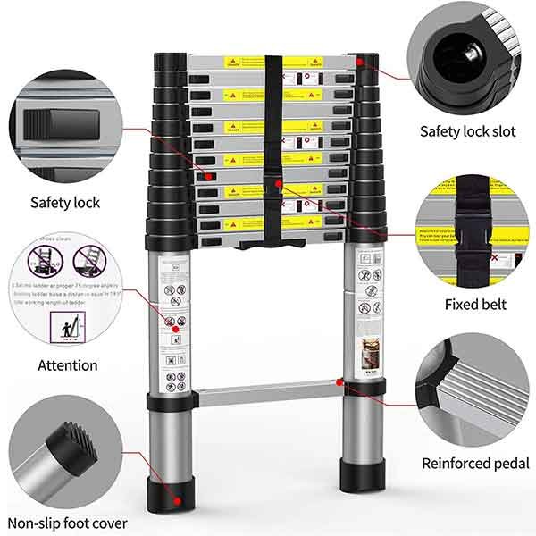 WIDE APPLICATION: Eminent for Home or Building maintenance work, Cleaning Window, Decorating the interior/exterior and doing a paint job. This telescopic ladder is a must-have accessory for every household or tools gear. It should be used to reach very high areas. Experimented and worthy ladder for professionals and individuals.