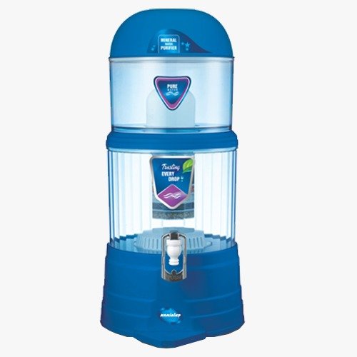 The nonelectric water pot is made of ABS food-grade plastic and is incomplete print color Transparent tank is made of an unbreakable ABS food-grade plastic tank of approx 22 Ltr A premium segment non-electric water purifier comes with Ceramic Filter Activated Carbon Sediment Cloth Filter pH Filter Minerals. The water is filtered from suspended and chemical impurities, sediments, and microbes to a certain level. This does not use any chemicals to purify your water.