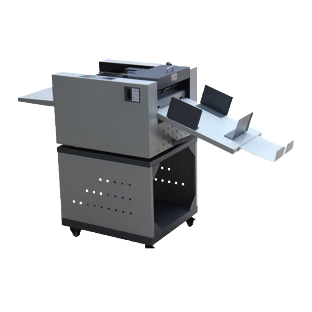 Introducing the Namibind Digital Creasing and Perforation Machine – Model DCM 3530 A, your ultimate solution for precision paper processing. Whether you’re running a print shop or a publishing house, this cutting-edge digital creasing and perforation machine is designed to elevate your productivity and perfect your paper-finishing tasks. With a wide range of impressive features, the Namibind 2 in 1 creasing and perforation machine offers versatility and precision that exceeds industry standards. It accommodates various paper sizes, from a minimum input size of 150*210 mm to a maximum of 320*660 mm, ensuring that your diverse needs are met effortlessly. One of its standout features is its exceptional creasing and perforation capabilities. The machine can handle paper thicknesses ranging from 60 g to 400 g for creasing and 60 g to 300 g for perforation. Its creasing speed of 4000 pages per hour ensures efficient and rapid processing, saving you valuable time. Precision is key, and the Namibind digital creasing and perforation machine delivers a minimum creasing distance of just 1 mm and a creasing precision of 0.3 mm. Plus, you can adjust the crease per sheet from 0 to 32 times, giving you unparalleled control over your creasing tasks. Counting is a breeze with positive and negative counting options, and you can store up to 30 different workgroups for easy access to frequently used settings. The machine also offers skew adjustment of up to +2 mm and step-less indentation depth adjustment, allowing you to fine-tune your results to perfection. The Namibind digital creasing and perforation machine employs a reliable suction feed system, capable of handling up to 100 mm of paper, ensuring smooth and consistent feeding. You can control the blowing volume with step-less adjustment for even greater precision. and, the transverse indentation tool provides additional versatility. With a voltage of 220V/50Hz and a power consumption of 200W, this machine is energy-efficient and environmentally friendly. It’s built to last, weighing 78 kg, and measuring 1560*560*480 mm in dimensions.