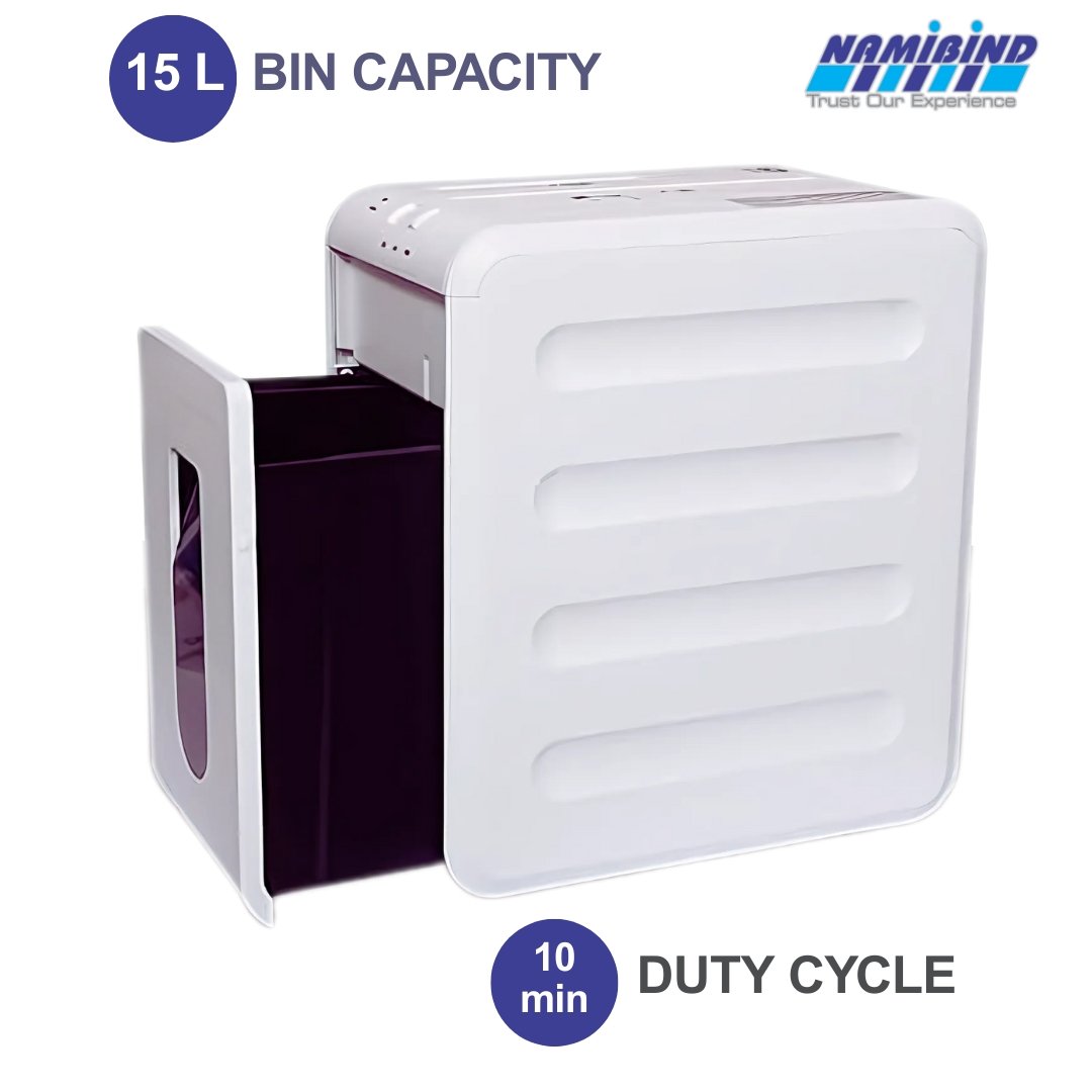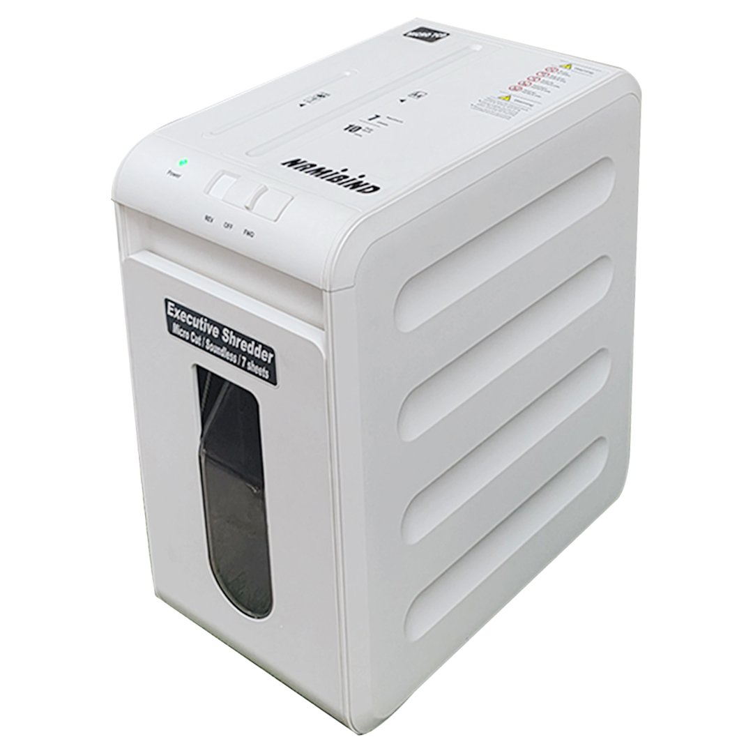 Ensure maximum document security with the Namibind Micro-7CD Microcut Paper Shredder, the ideal solution for home offices, corporate setups, and workstations that require high-level data protection. With a powerful microcut mechanism, this shredder reduces paper into tiny 2 x 9 mm particles, making it virtually impossible to reassemble or retrieve sensitive information. The Namibind Micro-7CD can shred up to 7 sheets per cycle, along with CDs, credit cards, and even staples, ensuring hassle-free disposal without the need to remove metal pins. Its 230 mm feed width comfortably accommodates standard A4 sheets. Equipped with a 15-litre waste bin, this shredder can handle extended workloads with minimal emptying interruptions. Designed for efficiency, the shredder operates in a 10-minute continuous run cycle, making it suitable for daily use in environments with moderate shredding needs. The compact size (369 x 200 x 325 mm) allows it to fit conveniently under desks or in office corners without occupying much space. The Micro-7CD combines performance with durability, offering quiet operation and smooth shredding action. Whether you’re disposing of confidential documents, expired credit cards, or old CDs, the Namibind Micro-7CD ensures complete destruction every time. Choose Namibind for reliable, high-performance shredders engineered to protect your privacy.