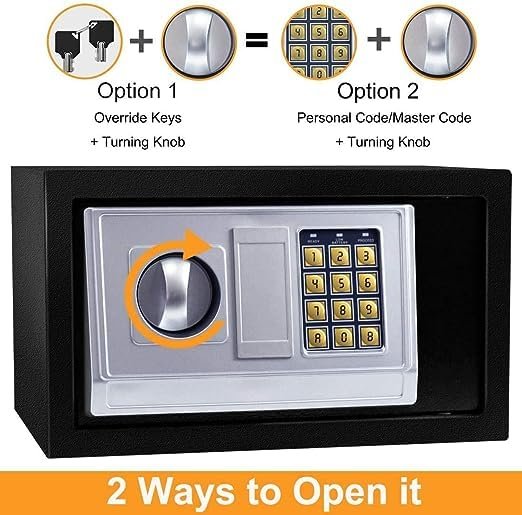 | Inside Box | 1 Digital Safe, 4 AA Batteries, 2 pcs Overriding keys, 2 pcs Mounting Screw and Manual Book |