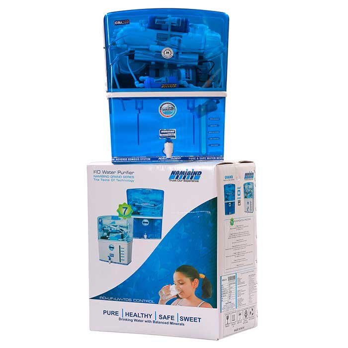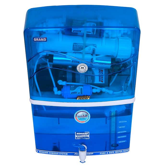 Today every home, office, hotel restaurant, bus stop, train, RO water bottle people are used. Especially today every home will get a row water purifier Namibind domestic row purifier grand model is the best home use, model. Grand Model Available in 2 Colors Complete White Color & Transparent Blue Color Grand Model USP of its compact design and made from ABS plastic 12 ltr Water Stores Tank Per Hour 12 ltr Water Purifier 7 Stage. Purifier System Included Pre Filter Carbon FilterSediment Filter 100 GPD Membrane, Membrane Water is completely filtered to make the water filtered Mineral cartage Sweetens the water Grand model can filter continuous water.