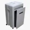 Namibind NB A6 Micro Cut Paper Shredder is designed for high-performance shredding in offices and businesses. With a 240 mm feed width, this shredder easily handles 15-17 sheets of 70 gsm A4 paper per pass, as well as CDs and credit cards. It delivers a secure 2×10 mm micro cut size, ensuring confidential documents are thoroughly destroyed. Powered by a 300W motor with a 3.2 meters per minute shredding speed, the NB A6 is both efficient and reliable. The machine comes with a large 27-litre waste bin, minimizing the need for frequent emptying. Built for durability, it weighs 23.5 kg and features compact dimensions of 650x400x310 mm, making it suitable for various office spaces. Whether you’re shredding paper, CDs, or credit cards, the Namibind NB A6 offers secure shredding with high capacity, making it ideal for businesses looking to maintain privacy and efficiency.
