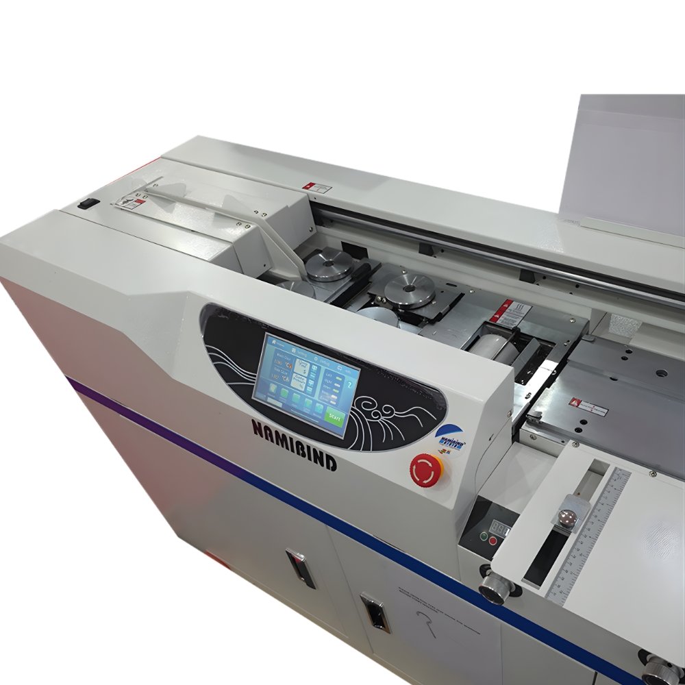 Namibind BM300L Automatic Perfect Binding Machine is a high-performance industrial book binding solution designed for commercial print shops, digital printers, publishers, and binding service providers. Engineered for precision, speed, and durability, this machine delivers professional-grade perfect binding for A4 documents with consistent output quality. With a maximum binding width of 310 mm (A4) and an impressive binding thickness of up to 60 mm (approximately 600 sheets), the Namibind BM300L supports heavy-duty workloads with ease. Its dual glue binding system (single spine glue + side glue) ensures strong adhesion, long-lasting binding strength, and a clean professional finish. The machine is equipped with a SIGO PLC control system and a 7-inch colourful touch display, enabling intuitive operation, precise control, and quick job setup. A combination of 10-tooth solar blade and dual milling cutters ensures accurate spine preparation for superior glue penetration and binding durability. With a production speed of up to 320 books per hour, automatic clamp cover operation, and a warm-up time of just 25 minutes, the Namibind BM300L significantly enhances productivity while reducing manual effort. Its robust construction and industrial-grade components make it ideal for continuous commercial use. This machine is an ideal investment for businesses seeking high-volume perfect binding with professional finishing quality.