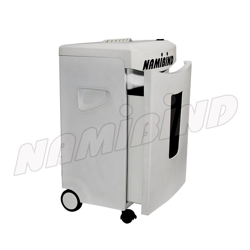 Namibind NB 1512 Paper Shredder Machine is a compact, efficient, and reliable solution for secure document disposal in offices, institutions, and professional workspaces. Designed with cross-cut shredding technology (3.8 × 28 mm), it ensures standard-level data security by converting sensitive documents into unreadable confetti-like particles. Capable of shredding up to 15 sheets at a time, the NB 1512 also features a separate slot for CDs and credit cards, making it a versatile choice for modern document destruction needs. Built-in overheat and overload protection enhances machine safety and longevity, while LED indicators provide clear operational status for ease of use. The 22-litre pull-out waste bin reduces frequent emptying, and lockable wheels allow smooth and safe mobility across office spaces. With low power consumption of just 170 watts, the Namibind NB 1512 delivers dependable performance with energy efficiency, all packed in a compact, space-saving design. Ideal for offices, banks, corporates, schools, libraries, and home offices requiring consistent and secure shredding.
