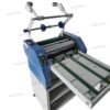 In this, a single side and both sides can also be laminated. Its main roller is a steel oil base and 1 roller is a silicon cutting roller Front side conveyor base is stand fitting which can be easily passed through lamination when the machine is running at high-speed ZX370: It can have jumbo roll fitting and Can do non stop lamination. The ZX370 may also have a foil fusing; the machine cover has been fitted above the stand, which can be laminated by placing the machine anywhere.