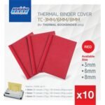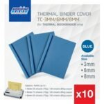 Thermal cover is available in different colours and sizes from 2 mm to 32 mm and cover is available in A4 and A3 sizes Thermal cover is available in every stationery shop.
